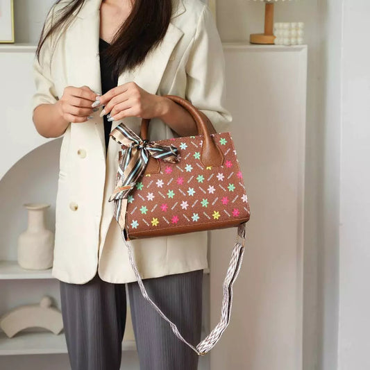 Square Leather Flower Wear a Scarf High-End Shoulder Sling Bag