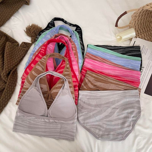Women Sports Underwear Set Strings Backless Bra & High Waist Panties Set