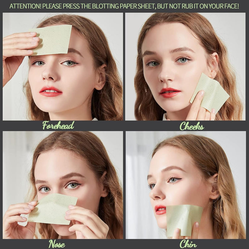 Gently press the blotting paper onto oily areas of the face. Do not rub. Dispose after use.