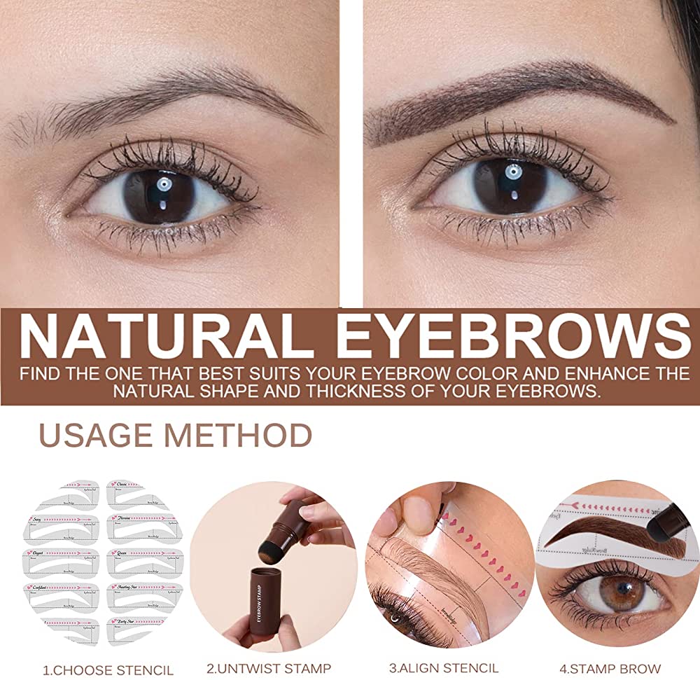 【Easty To Apply】one step eyebrow stamp shaping kit includes a unique air cushion stamp, 10 different stencils, 1 brow brushes which made customer convenience in mind to make it easier than ever before to style and groom your eyebrows.