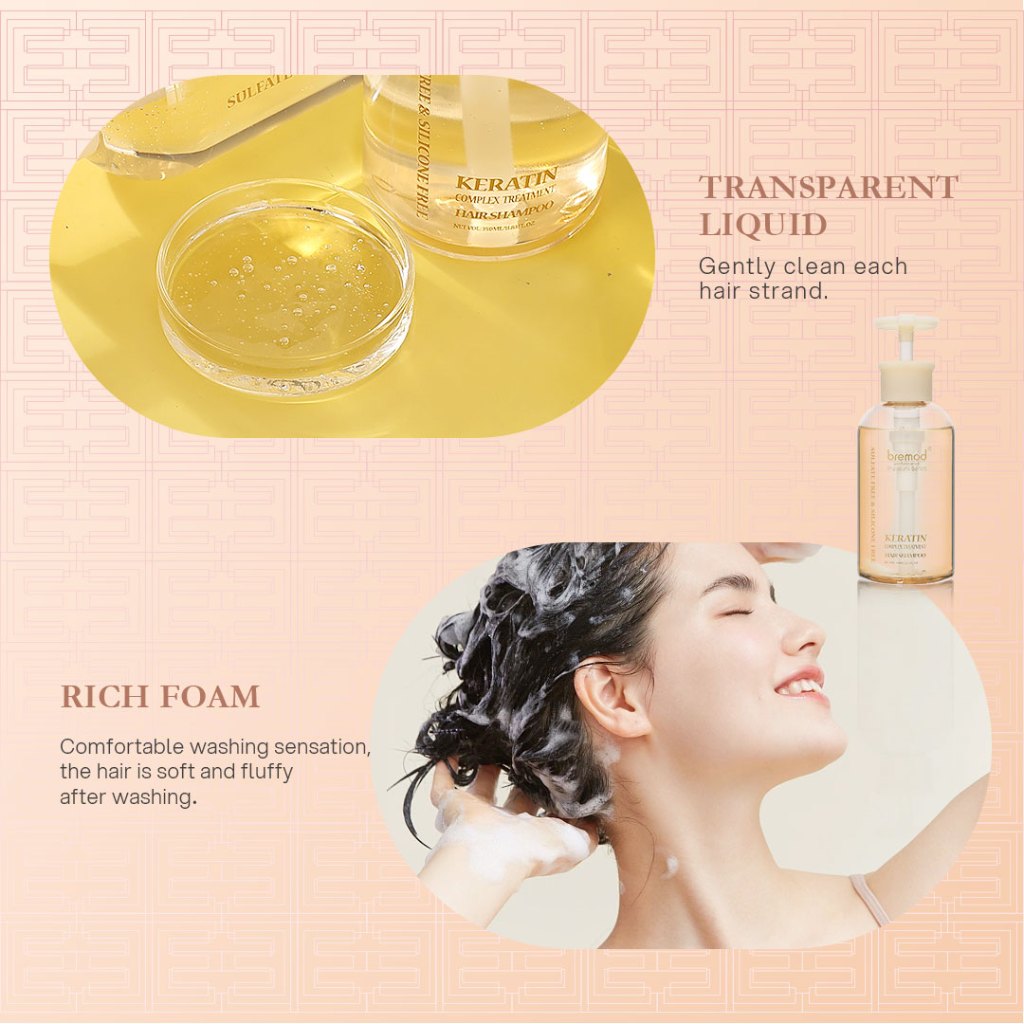 Bremod Premium Hair Keratin Complex Treatment Shampoo Conditioner Care Sulfate Silicone Free 350ML