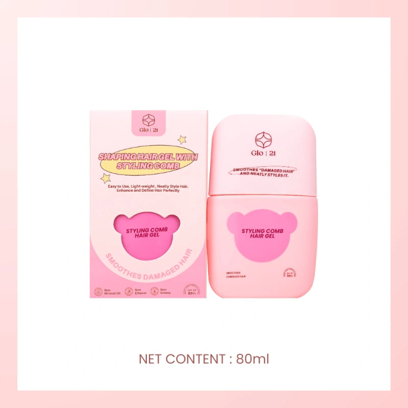 Create the perfect style with GLO21 Shaping Hair Gel and included styling comb.
