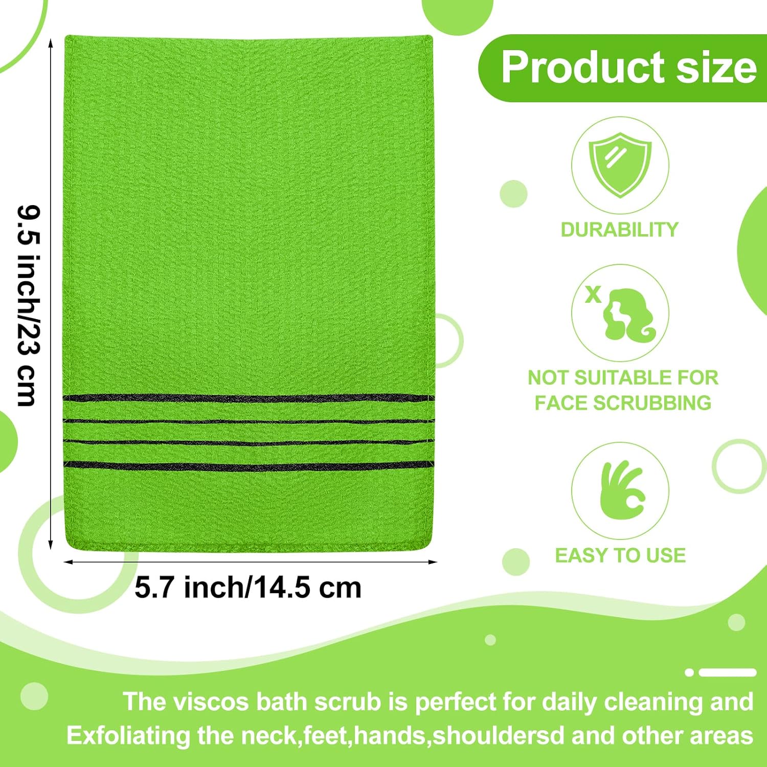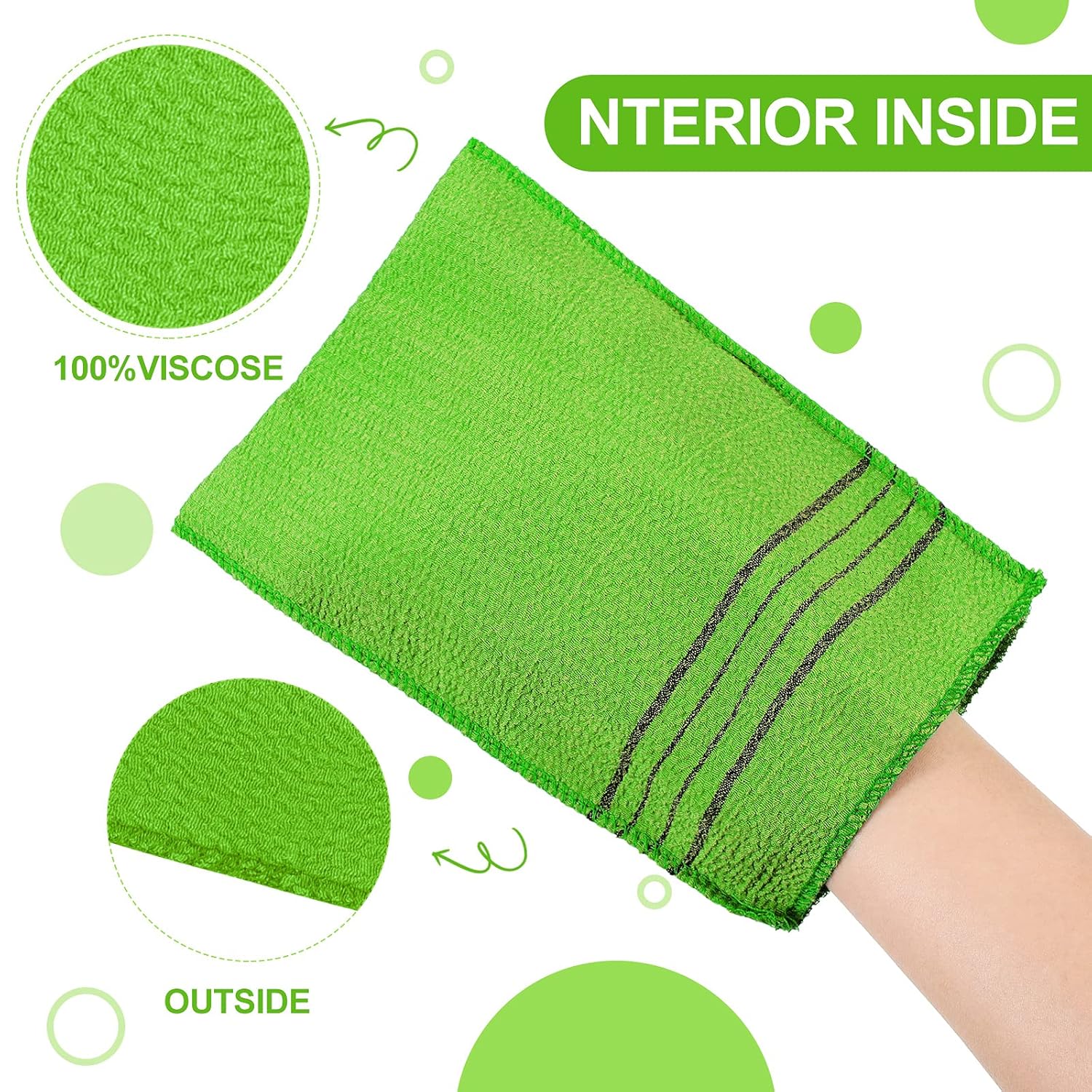 - 100% Viscose Rayon exfoliating scrub bath mitten.