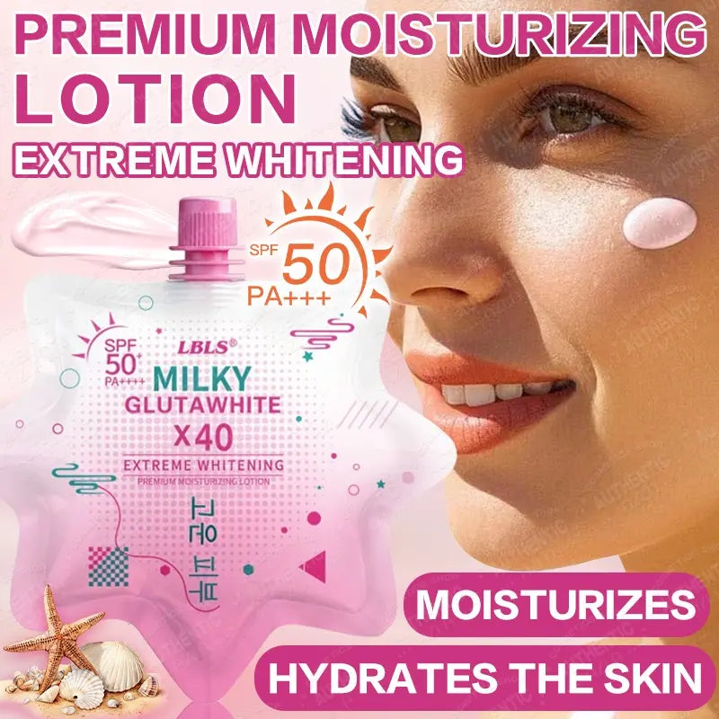 Protect and brighten your skin with this LBLS Milky Gluta White X40 SPF50 PA+++ Extreme Whitening Sunscreen — a daily UV defense with added brightening benefits!