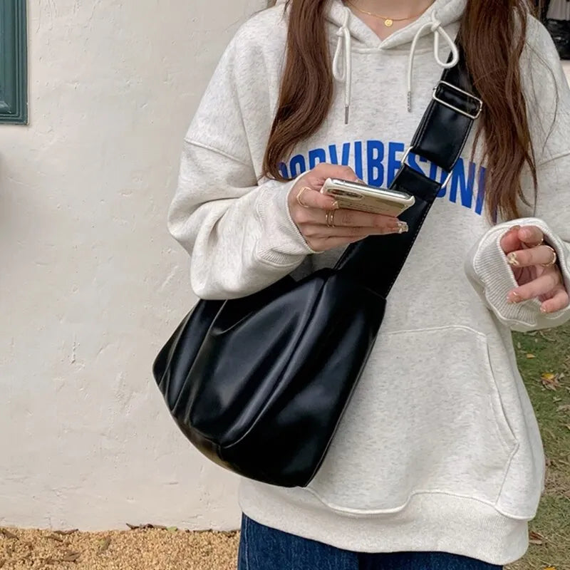 Minimalist Soft Leather Wide Strap Shoulder Bag