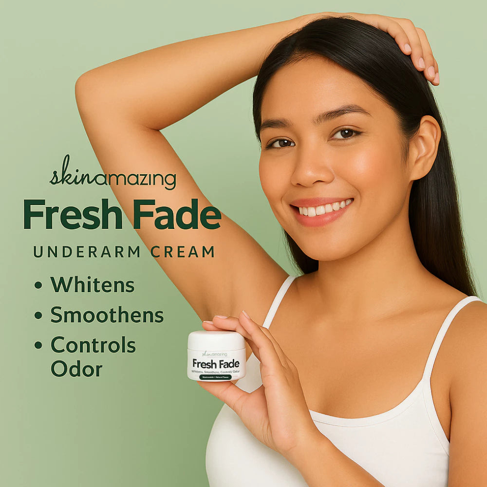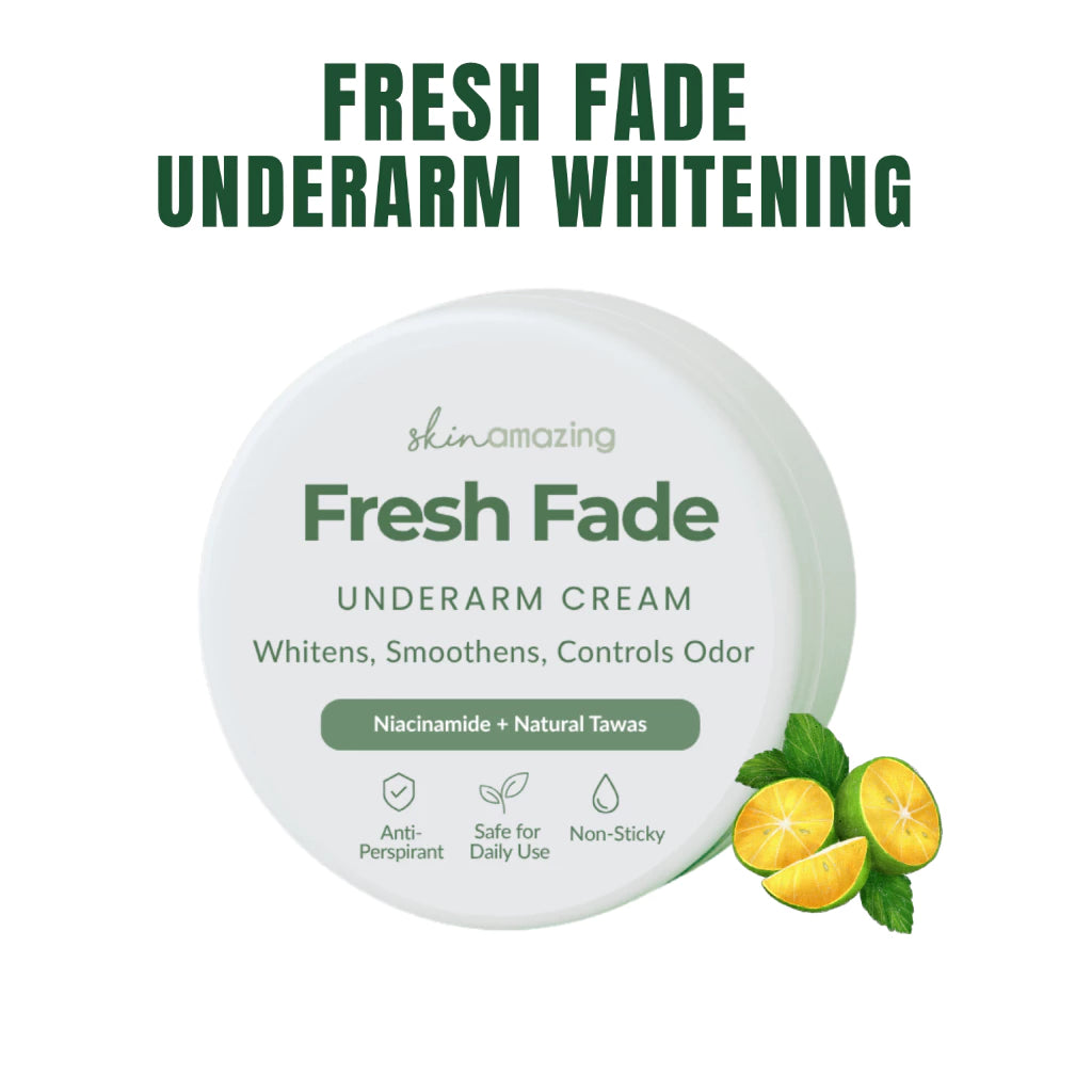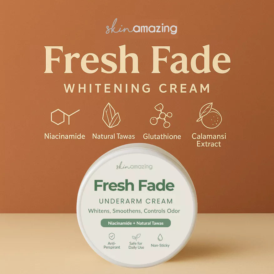 Aqua, Stearic Acid, Cetyl Alcohol, Cetearyl Alcohol, Mineral Oil, Potassium Alum, Triethenolamine, Fragrance, Isopropyl Myristrate, Titanium Dioxide, Niacinamide (and) Alpha-Arbutin (and) Sodium Metabisulfite (and) Tranexamic Acid (and) Aminopropyl Ascorbyl Phosphate (and) Geranium Robertianum Extract (and) Paeonia Suffruticosa Root Extract (and) Scutellaria Baicalensis Root Extract (and) Thymus Serpyllum Extract (and) Alpinia Katsumadai Seed Extract (and) Glutathione, Glycerin, Phenoxyethanol, Citrofortunella Microcarpa (Calamansi) Fruit Extract, Allantoin, Methyl Cellulose Copolymer. #skinamazing #freshfade #underarmcream #cream #underarmwhitening #odorcontrol